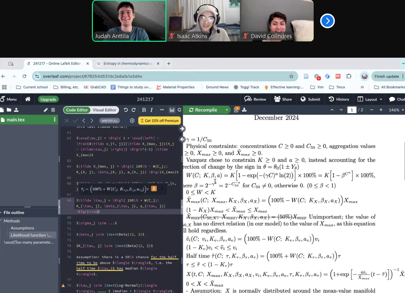 Archived semester course materials, worked on his BME research paper, and fit a bivariate sigmoid curve to lab data using Bayesian methods.